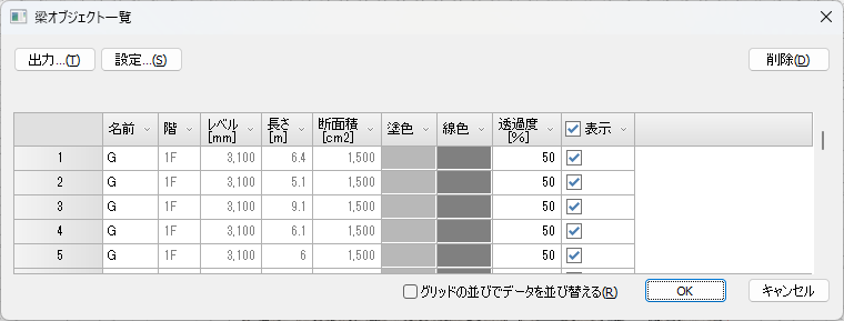 ☆リストの操作に関してはグリッドコントロールの基本操作をご覧ください。