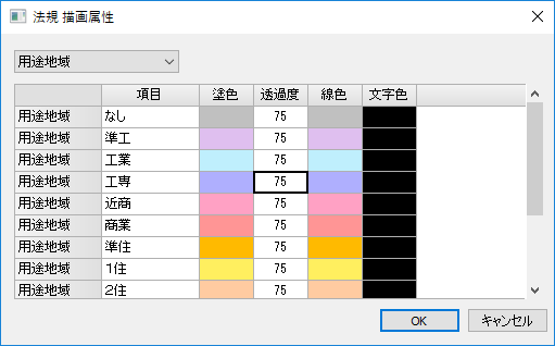 選択された法規コマンドで使用されるオブジェクトの描画属性