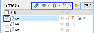 検索結果のオブジェクトをビュー上でハイライトで確認したり、