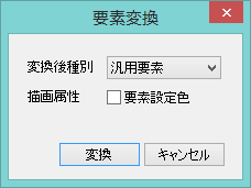 「描画属性:要素設定色」のチェックを入れると変換する種別の初期設定の色属性が変換要素に適用されます。チェックが外れている場合は、色属性は変更されません。
