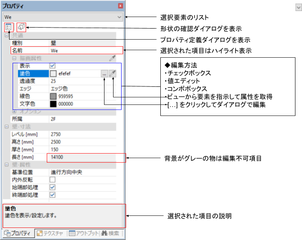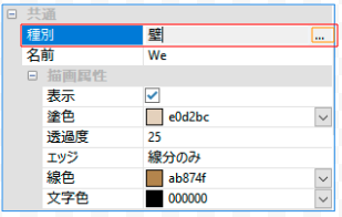 要素種別を表示します。[…]ボタンより要素種別の変換が可能です。 |