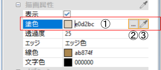 表示された属性情報の「共通」→「描画属性」→「塗色」の項目を編集します。