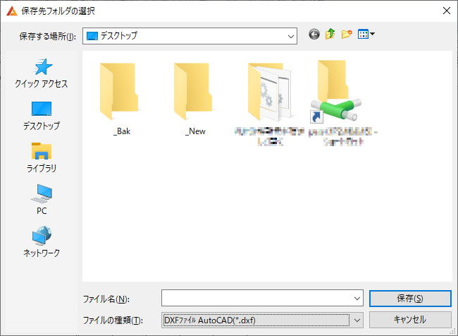 保存先フォルダを設定して「保存」をクリックすると図面データがフォルダ内に保存されます。