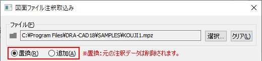 [追加]または[選択]ボタンより図面ファイルを選択します。
