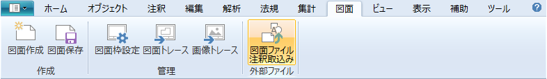 リボンメニュー「図面タブ」→「図面ファイル注釈取込み」を実行します。