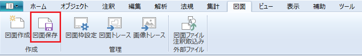 リボンメニュー「図面タブ」→「図面保存」を実行します。