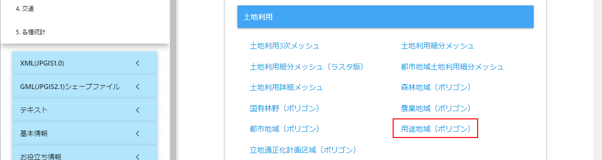 利用するのは、「土地利用」の、[用途地域] になります。