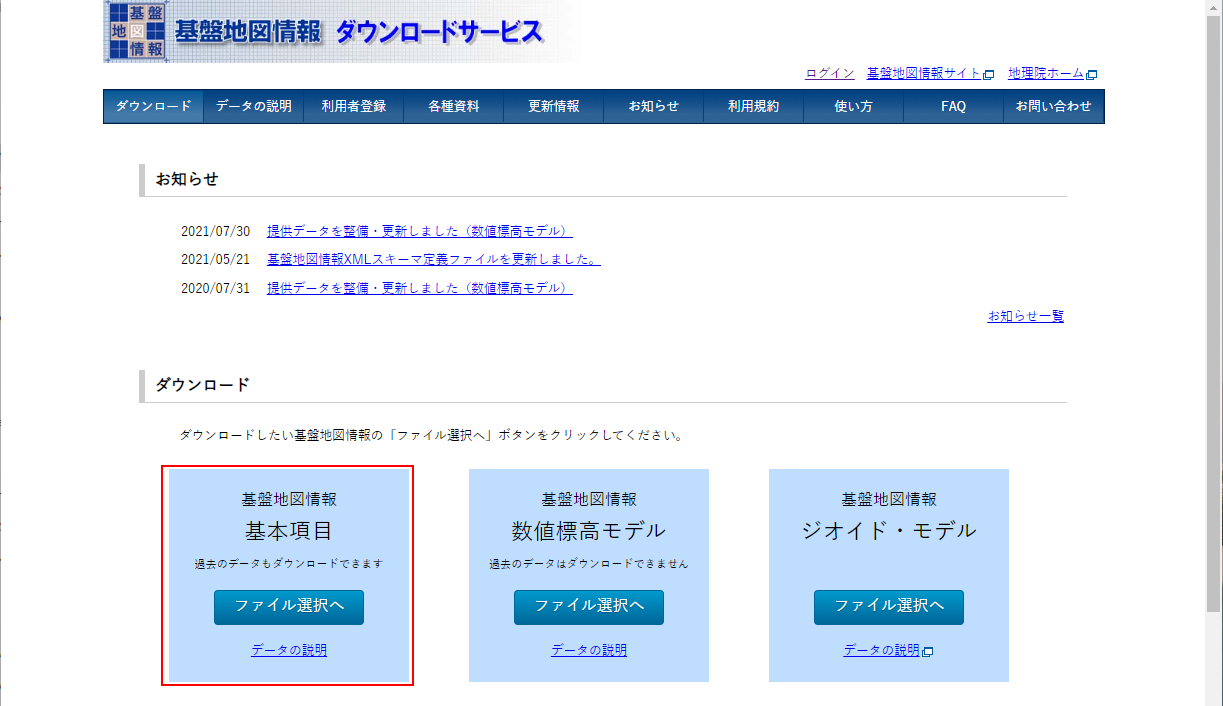 [基盤地図情報 基本項目]をクリックします。