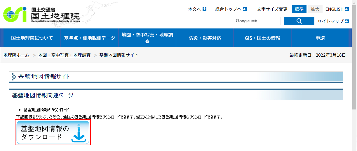 [基盤地図情報のダウンロード]をクリックします。