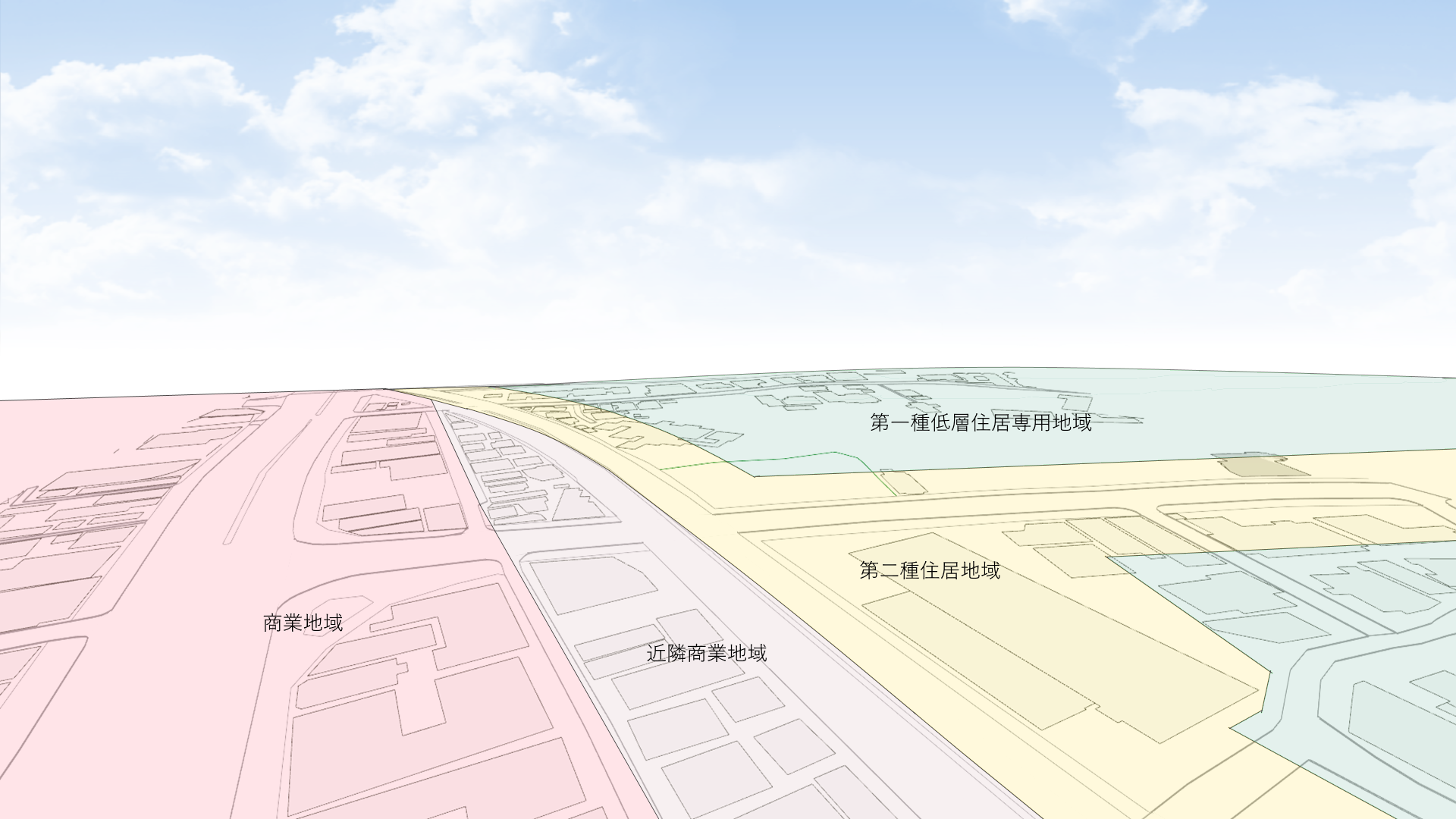 用途地域データは、地域ごとに色分けされて表示されます。