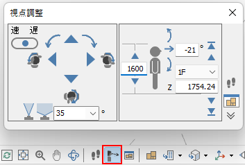 視点の調整はマウスやキー操作でのビューイングの他、視点調整ダイアログでの調整が可能です。