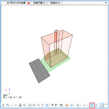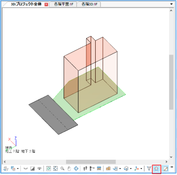 3Dビューのツールバーより投影形式を切り替えることができます。