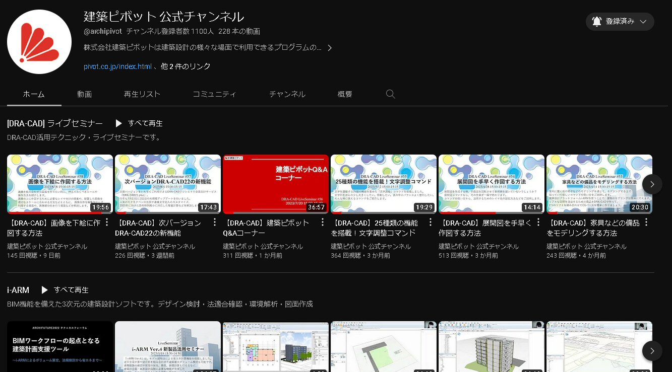 これまでに行われたセミナーやイベントをご覧いただけます。建築ピボット 公式チャンネル(YouTube)には掲載していない動画もございます。ぜひご視聴ください。